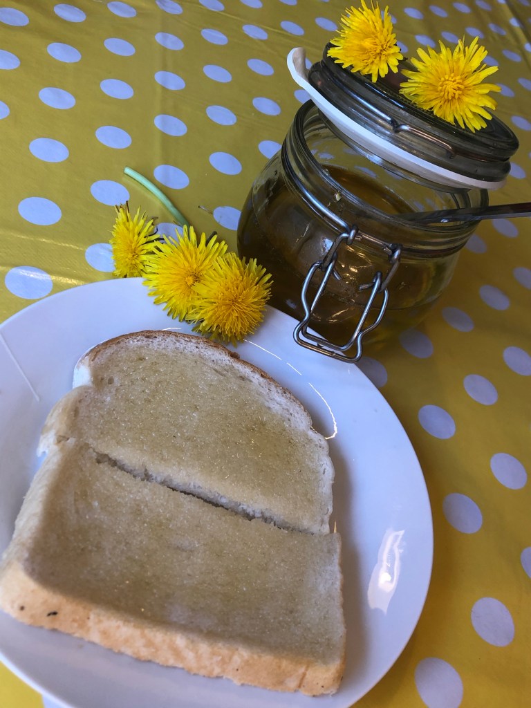 We had a garden full of dandelions which led to some discussion with Toby (4) about the flowers and bees. He asked if people could eat them and that’s how we came to try dandelion honey!