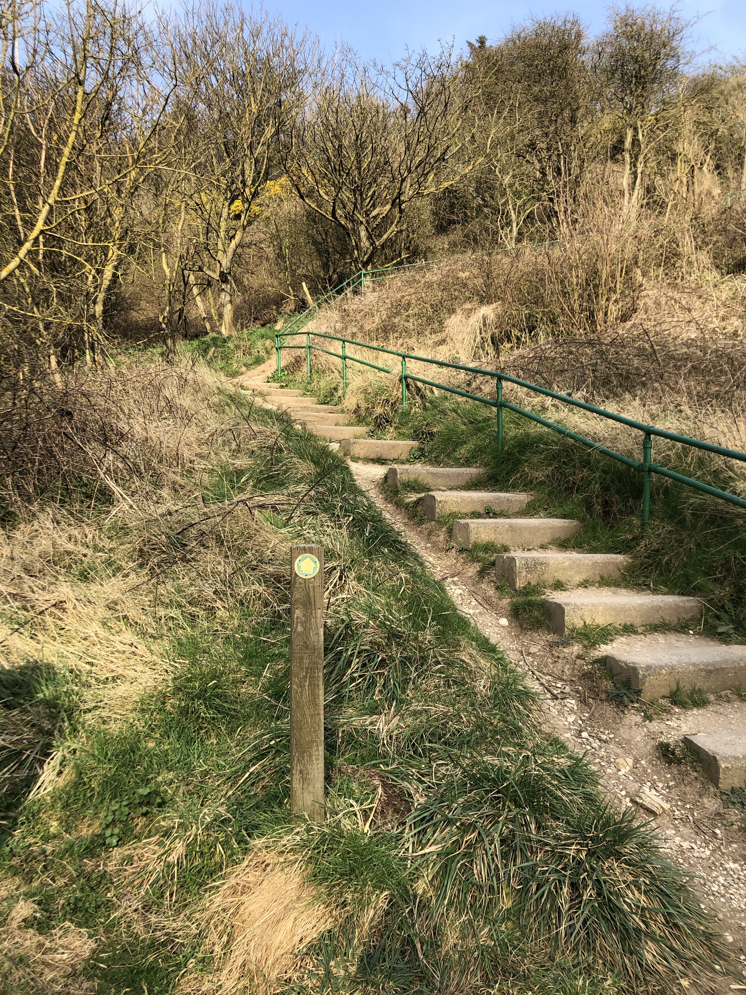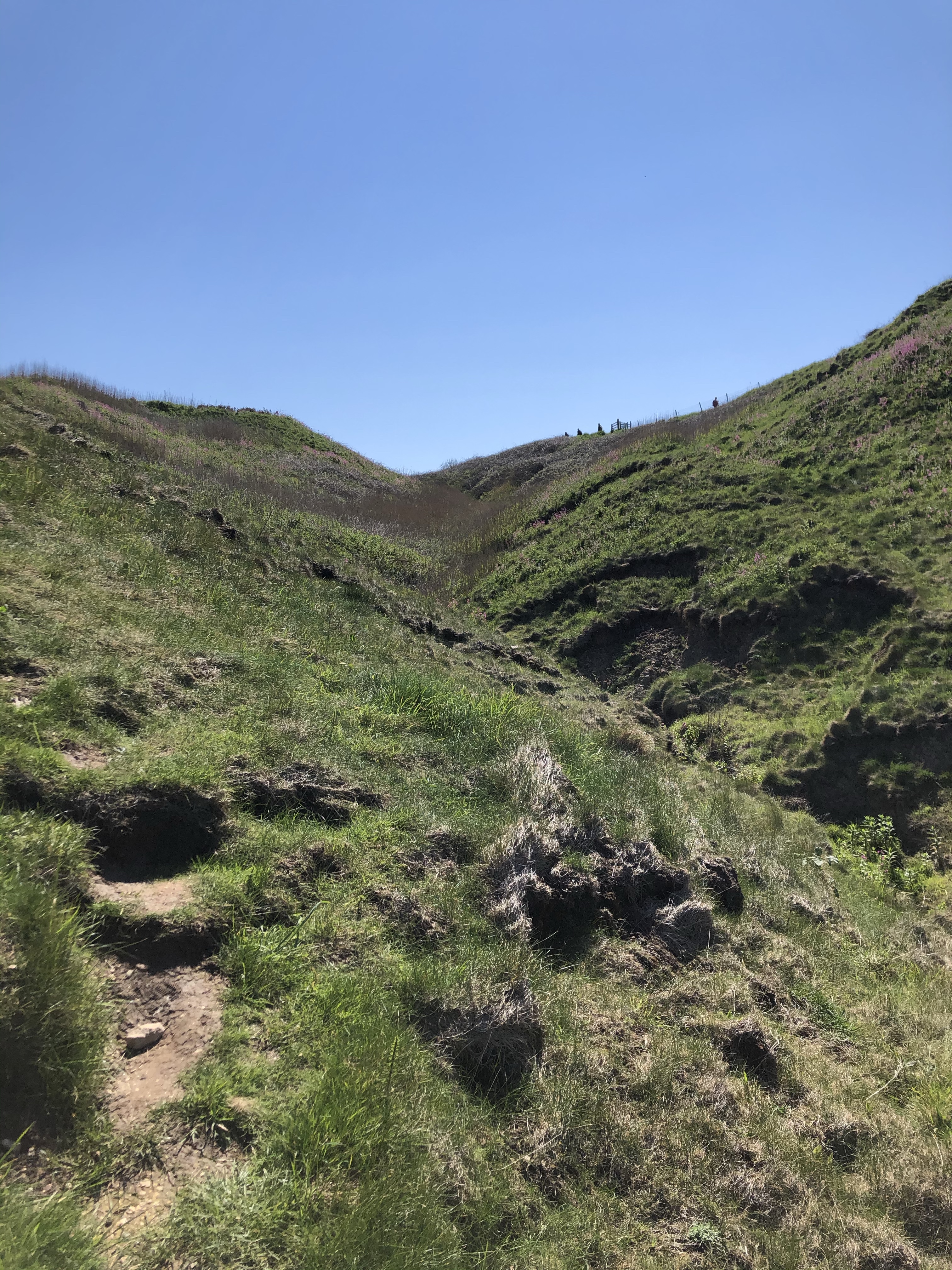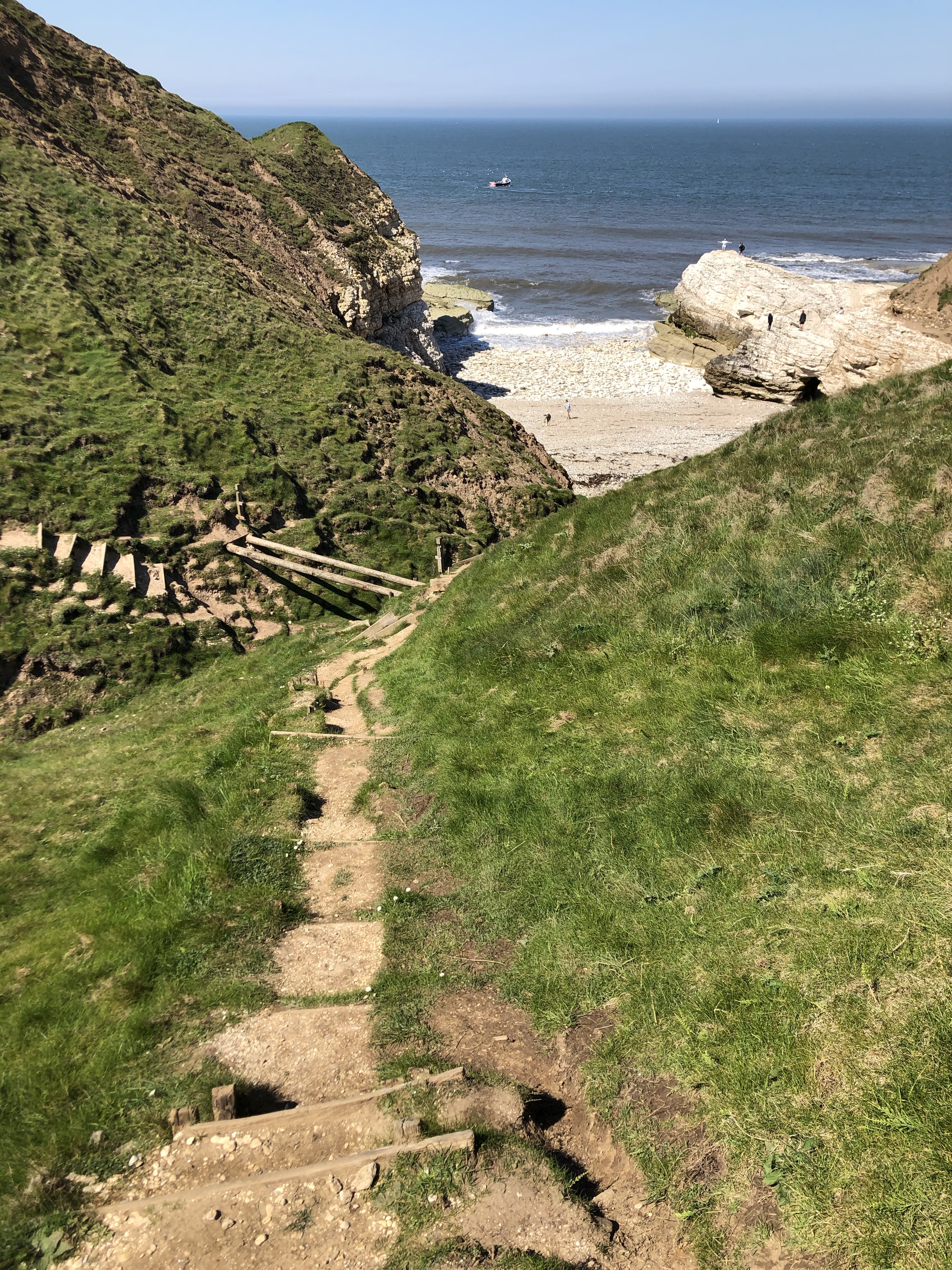 Descending the steppy path to Thornwick Bay
