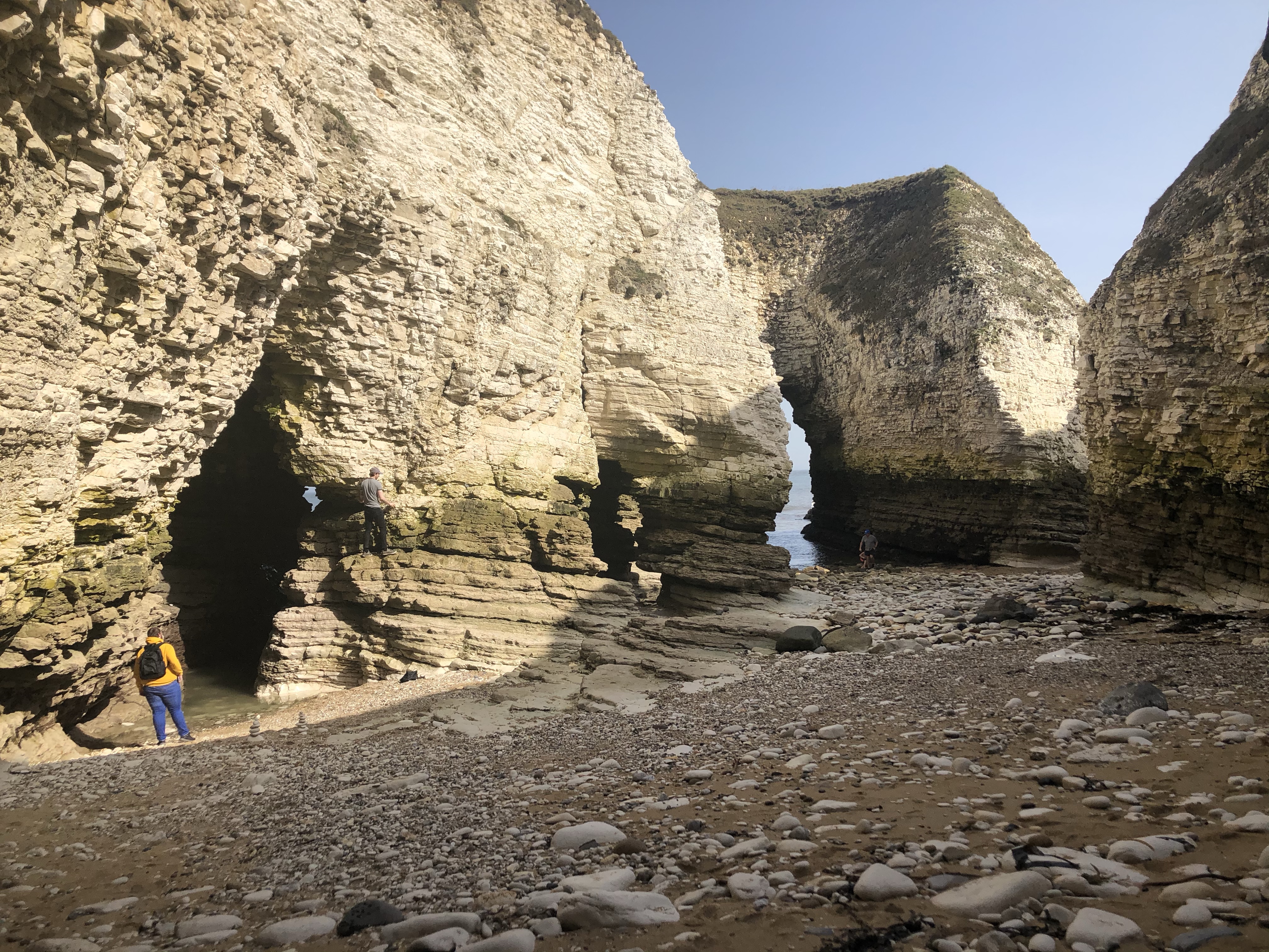 Our latest visit to Flamborough saw us investigating the natural arches and hideaways on Thornwick Bay. The first time we visited we arrived at high tide so couldn’t explore like we would have liked but yesterday the tide was out and we immediately set out to see as much as we could before the tide turned and started coming for us.