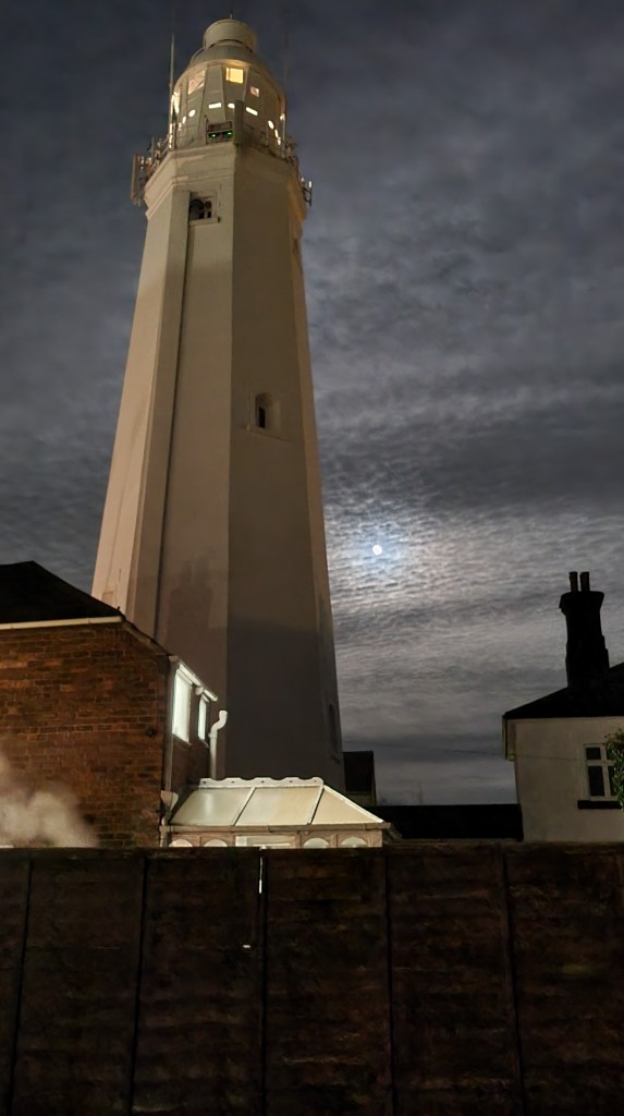 Withernsea lighthouse being watched over by the wolf moon 🌙
