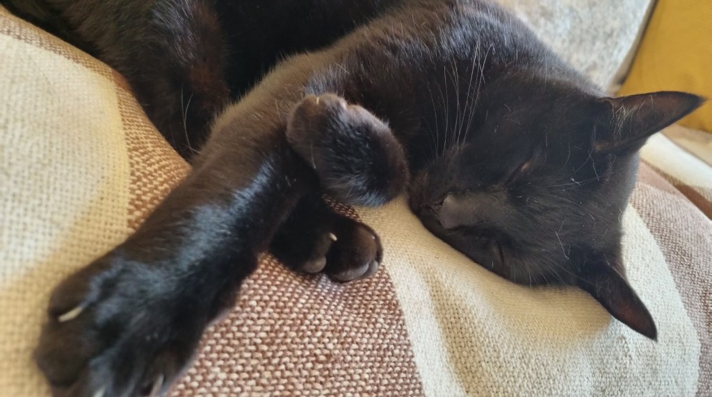 Rossi is a daily visitor to my nans house, he belongs to a neighbour but seems to prefer it at hers. Here he is sleeping on her sofa.